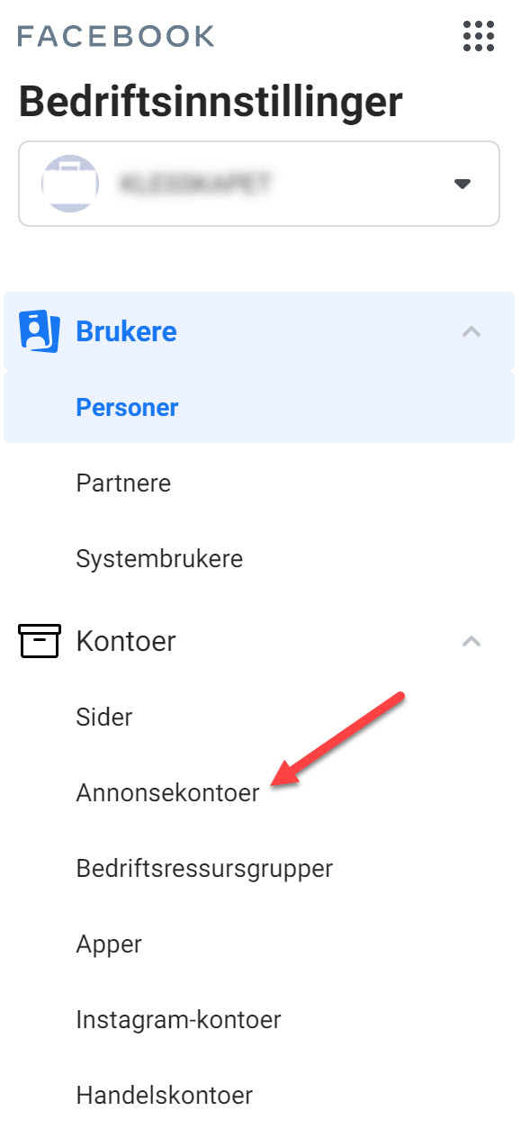 1) Gå til business.facebook.com og klikk på "bedriftsinnstillinger"